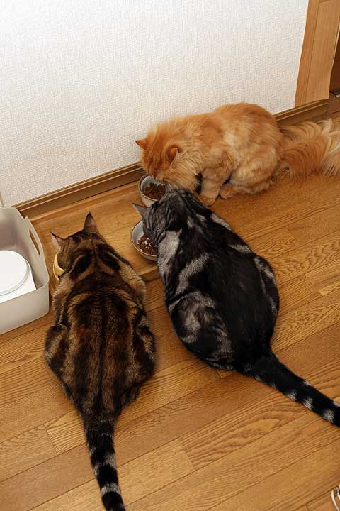 久しぶりに3ニャン揃ってるところ撮りました。