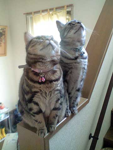 そういえば、先日の噂の東京マガジンで姿勢良く寝るネコがいるというネコカフェが紹介されていて、その中の1匹がアメショーのブラウンでクーにそっくりだった!