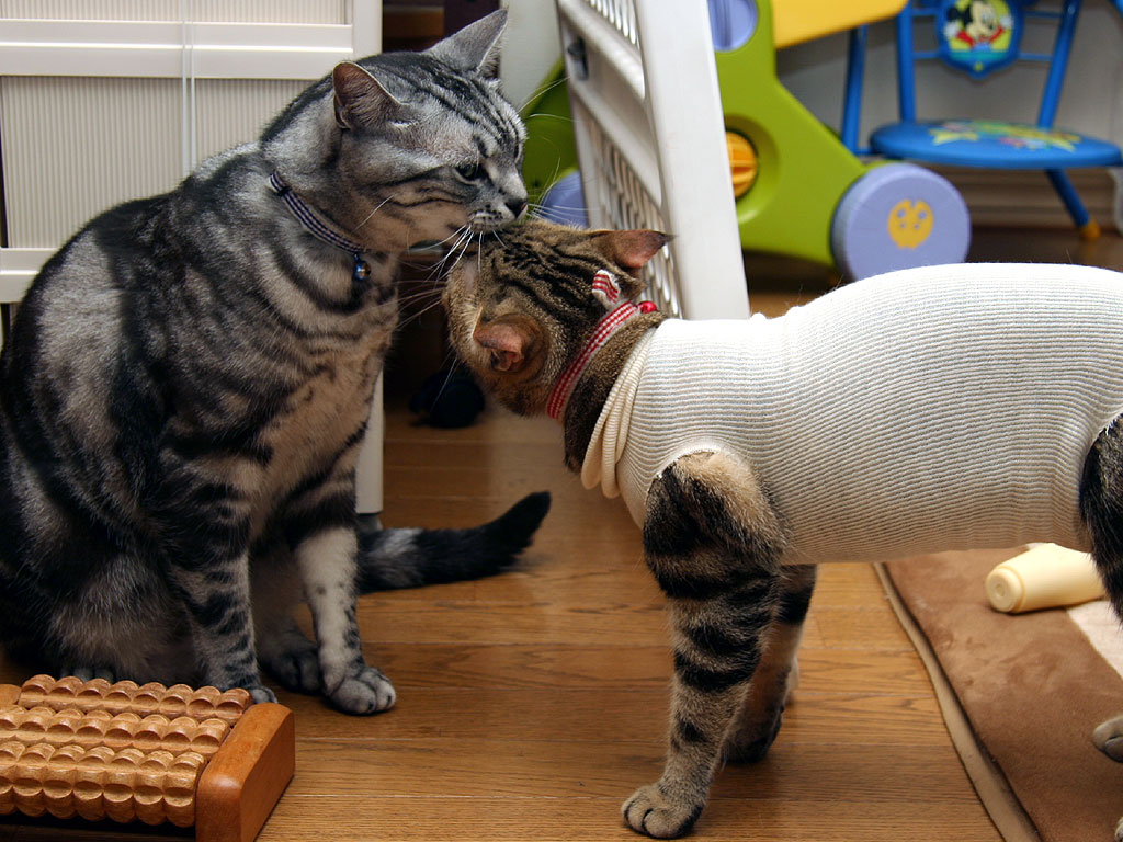 トップ > アメリカンショートヘアー・ブラウンタビーのクー, タムとクーとモグ, ペルシャ猫・レッドタビーのモグ